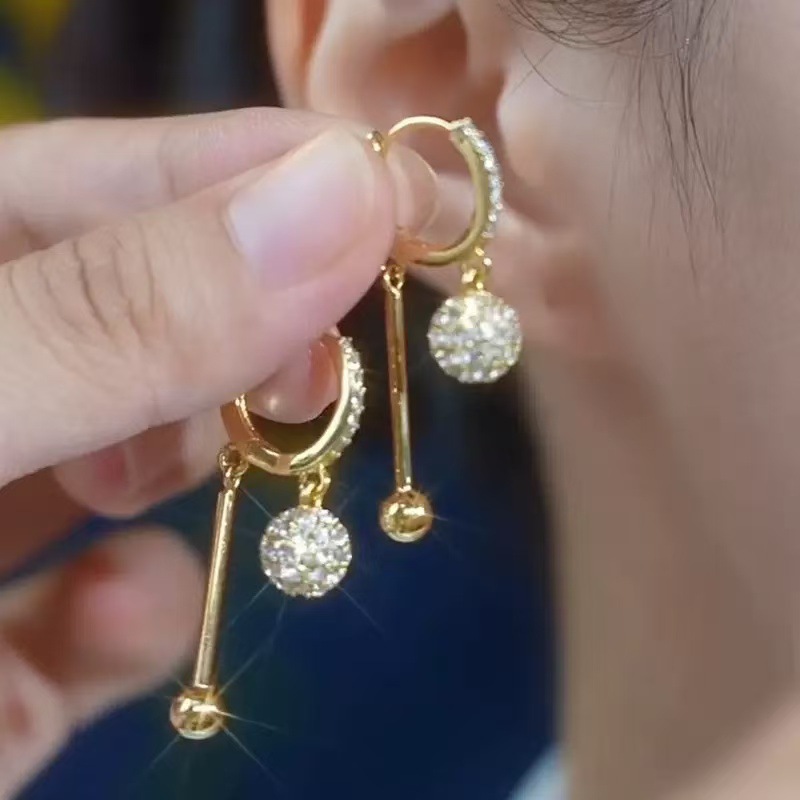 🌟 Effortless Glam – All-Match Gold Diamond Ball Earrings