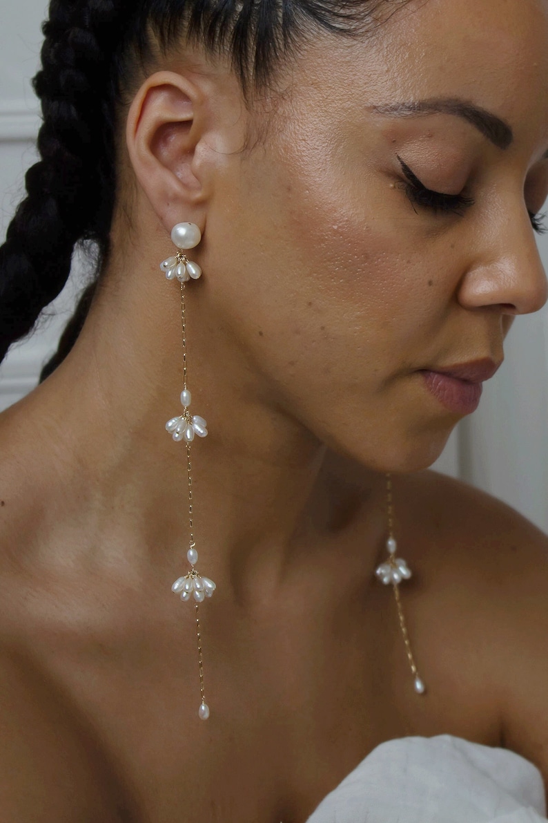 Bridal Jewelry - Long and Dainty Pearl Statement Earrings - Shoulder Duster Earrings - Fashion Trends - Minimalist Bride - Stud with Drop