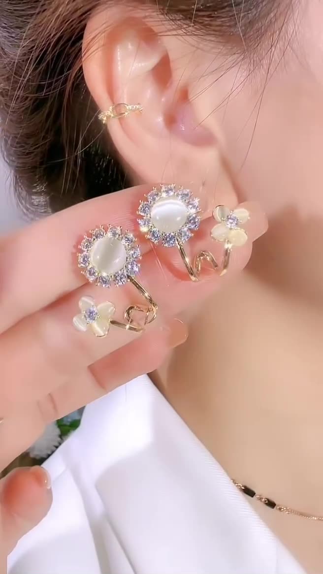 Fashionable and high-end cat's eye flower earrings A Pair