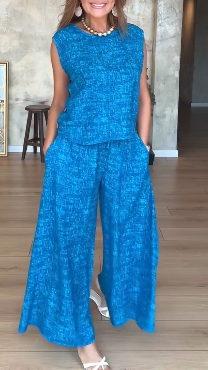 Embrace Vibrant Ease: Blue Textured Two - Piece Set