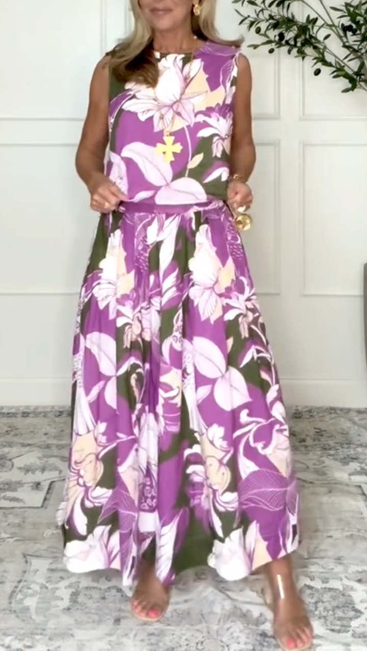 Embrace Tropical Opulence: Purple Floral Two - Piece Set