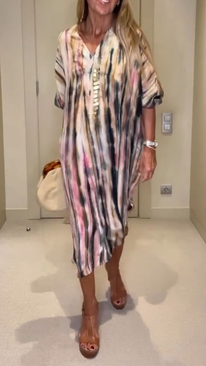 Embrace Artistic Flair: Watercolor Striped Midi Dress