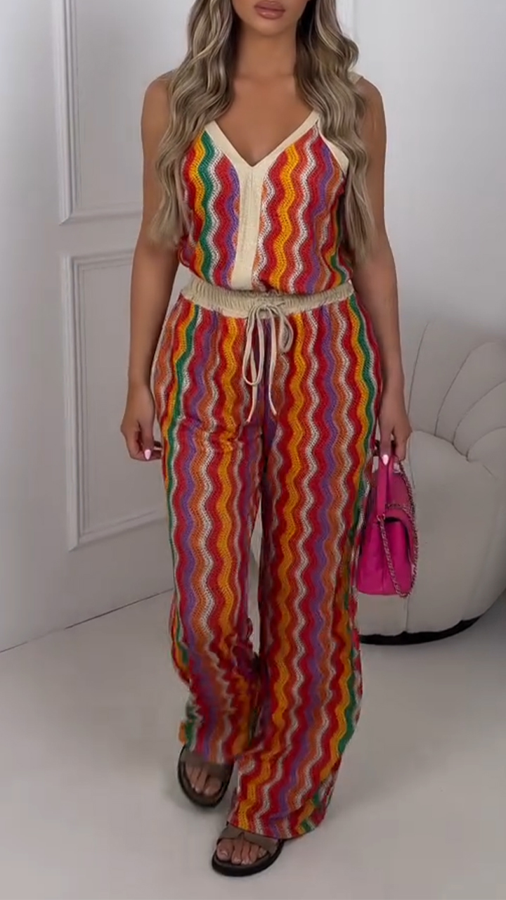 Embrace Vibrant Boho Spirit: Rainbow Wave Two - Piece Set