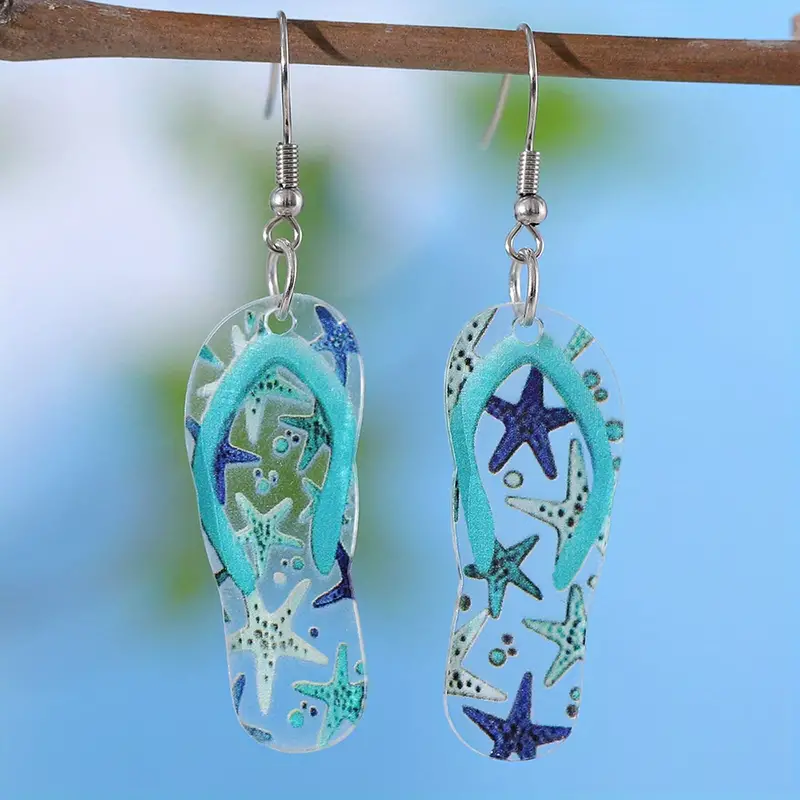 Ocean Style Drop Earrings Acrylic Slipper Design Match Daily Outfits Party Accessories Perfect Summer Vacation Jewelry