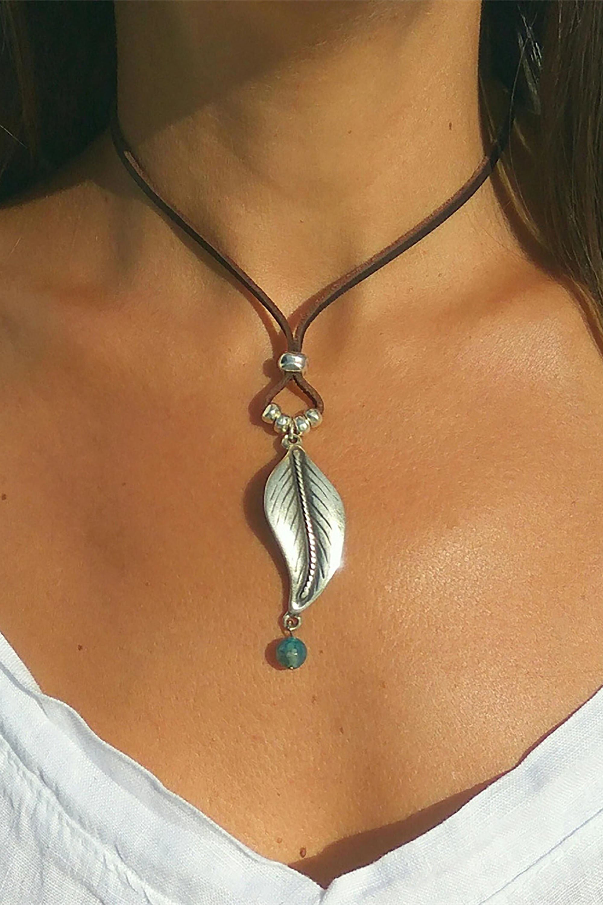 Retro Leaf Pendant Bone Chain Bohemian Ethnic Necklace