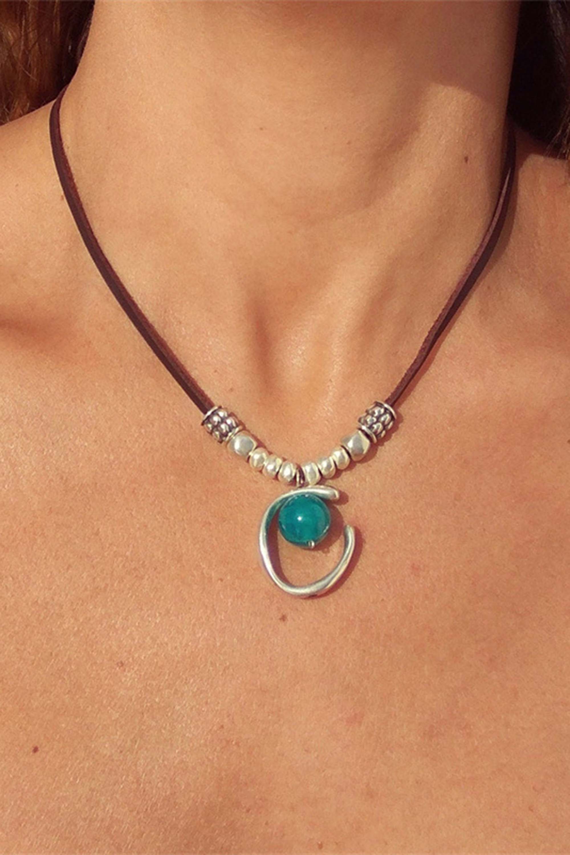 Vintage Natural Stone Half Ring Pendant Necklace