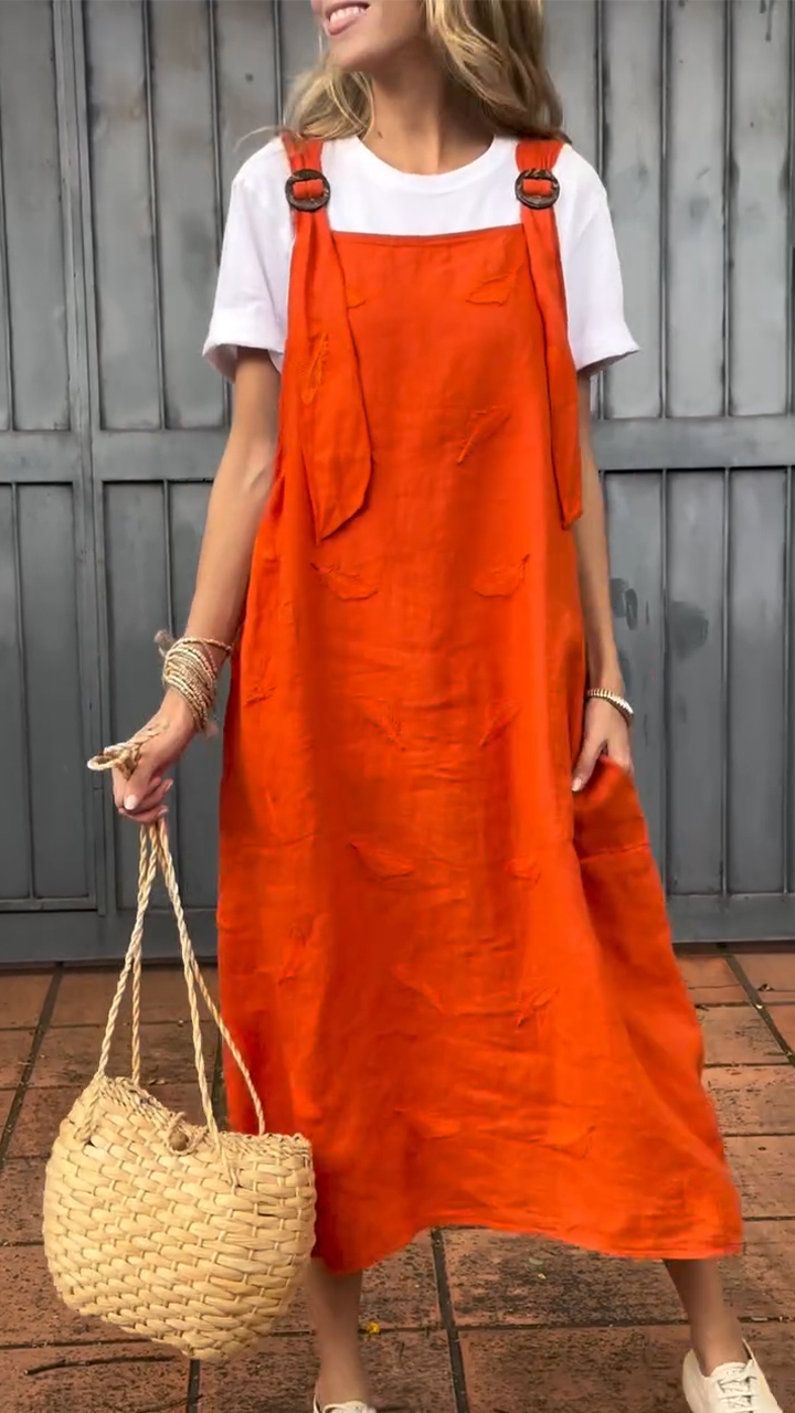 Embrace Sunny - Day Charm: Orange Linen Overall Midi Dress
