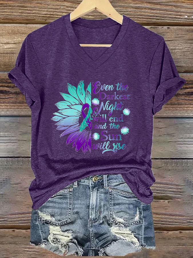 Women's Even The Darkest Night Will End And The Sun Will Rise Print T-Shirt