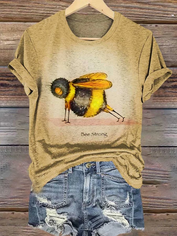Women's Funny Bee Strong Art Print Casual T-shirt