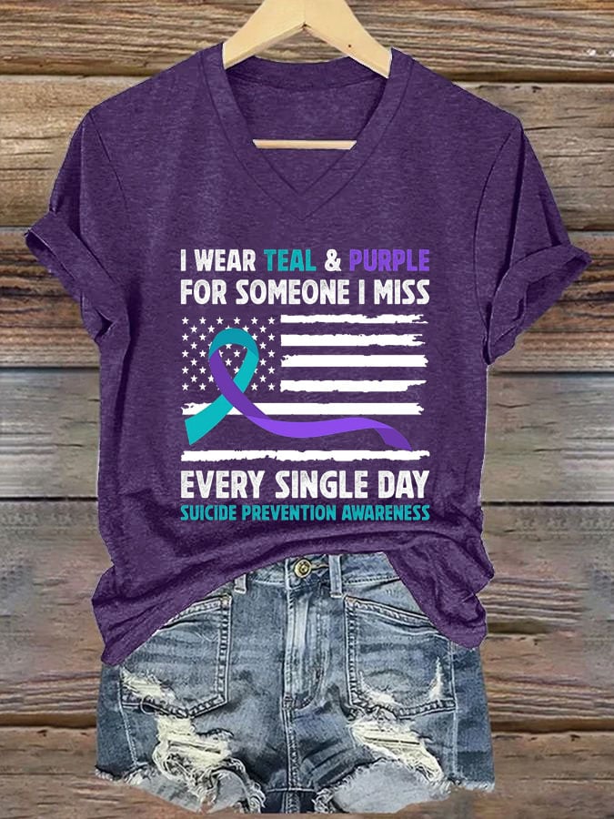 Women's I Wear Teal & Purple for Someone I Miss Every Single Day Print T-Shirt