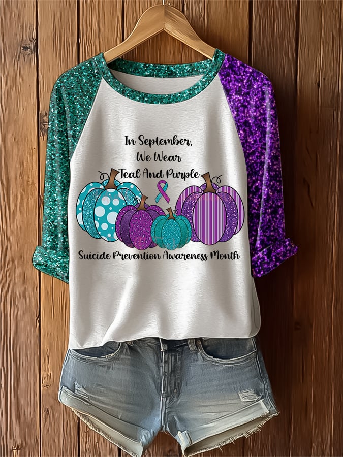Women's In September We Wear Teal And Purple Suicide Prevention Awareness Print Raglan Sleeve T-Shirt