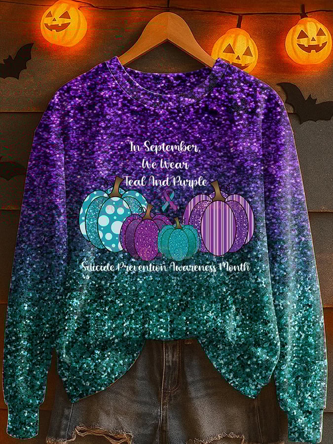 Women's In September We Wear Teal And Purple Suicide Prevention Awareness Print Round Neck Sweatshirt