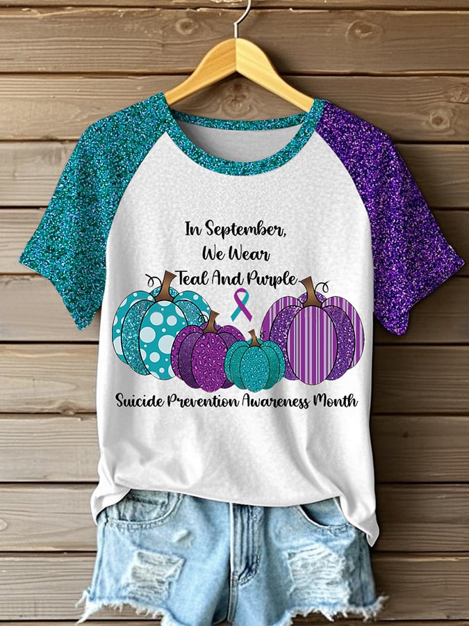 Women's In September We Wear Teal And Purple Suicide Prevention Awareness Printed T-Shirt