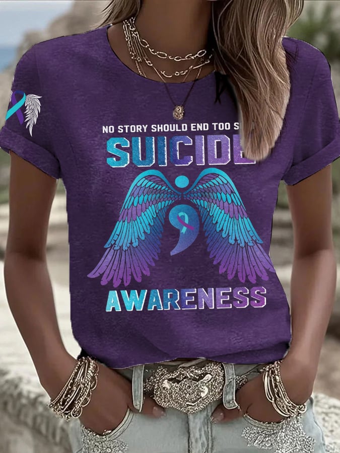 Women's No Story Should End Too Soon Suicide Awareness Print Casual T-shirt