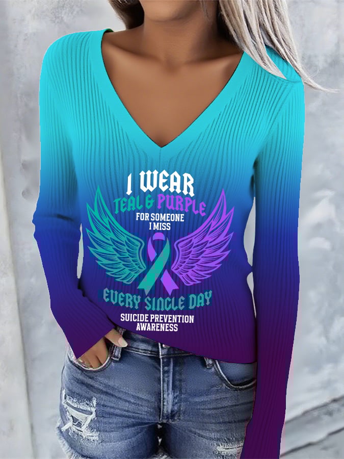 Women's Retro I Wear Teal & Purple In Memory Of My Brother Print Knit Top