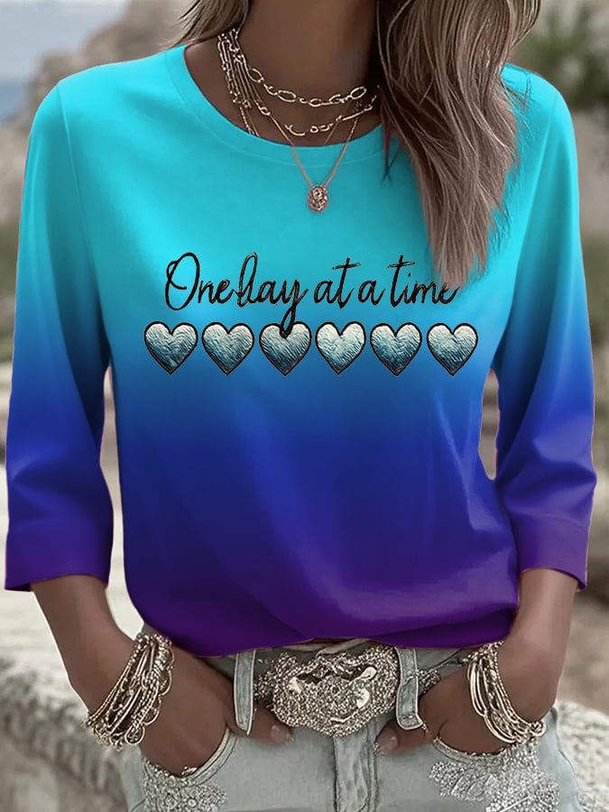 Women's Retro One Day At A Time Printed T-Shirt
