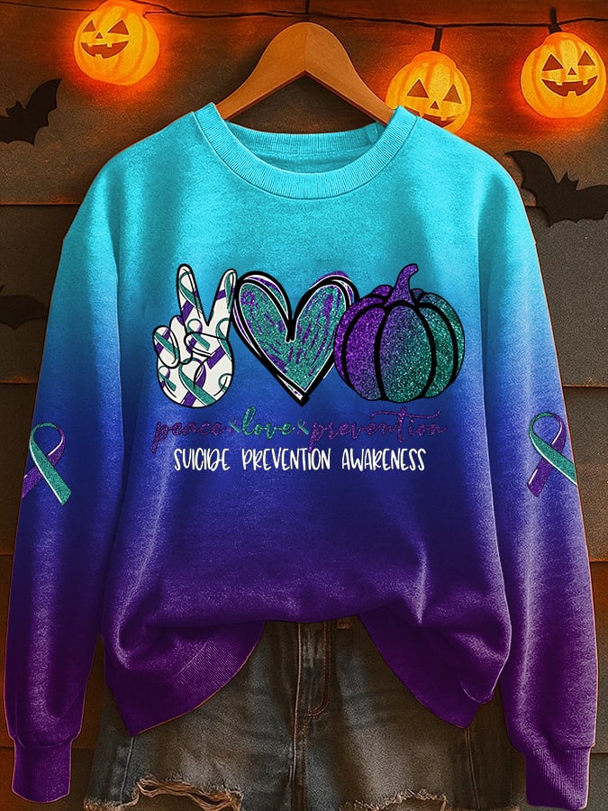 Women's Suicide Prevention Awareness Print Round Neck Sweatshirt