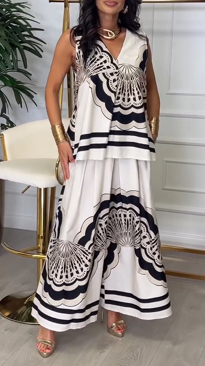 Embrace Timeless Elegance: Black - and - White Print Two - Piece Set