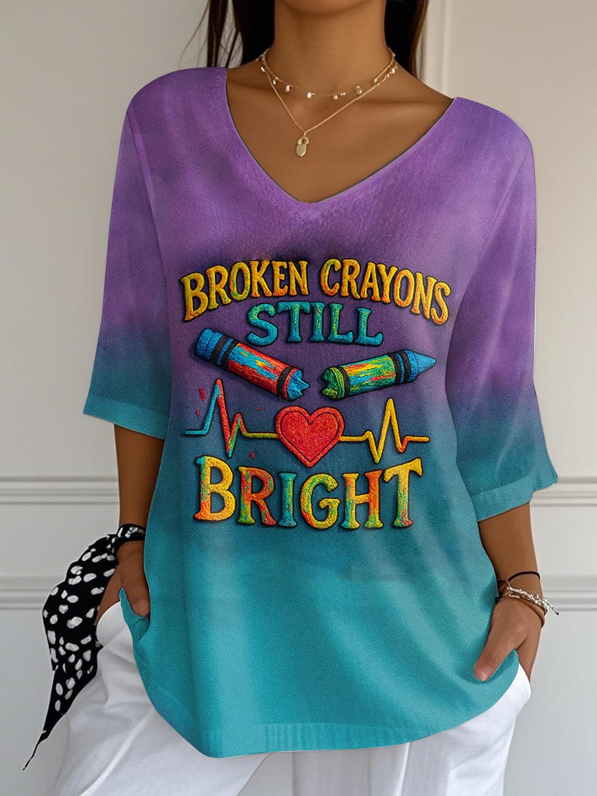 Women's Vintage Broken Crayons Still Bright Print Mid Sleeve T-Shirt